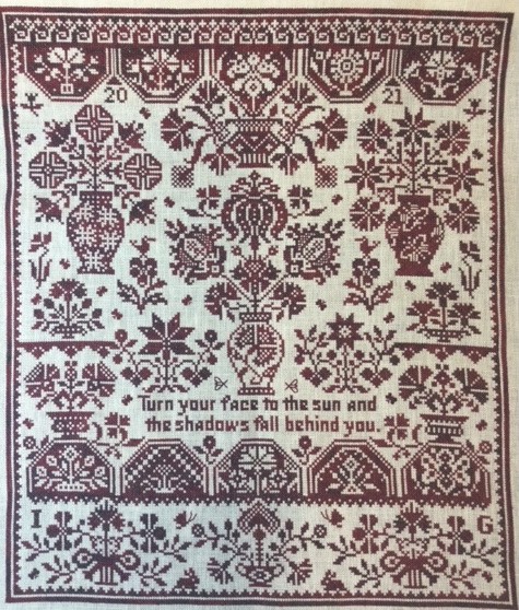 Pavane for our Times stitched by Inez Giles, designed by Julie Line