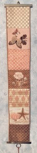 In the three pictorial panels I have appliqued the most prominent elements: the butterfly, the rose, plus the sea urchin and the long shell in the foreground. Applique was a technique that was introduced probably to every EGA chapter in the country, and at the time was considered quite advanced.