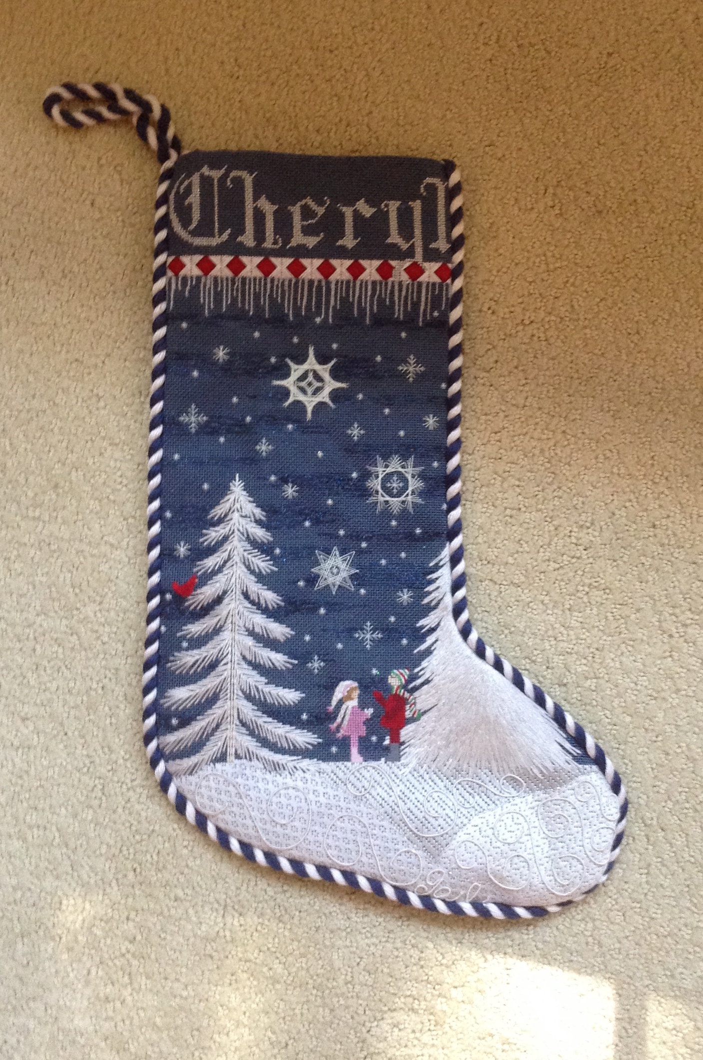 When I look at all the stockings hanging along my daughter’s mantle I am drawn to Cheryl’s stocking, as of all those I have made over the years this one is the most visually compelling.