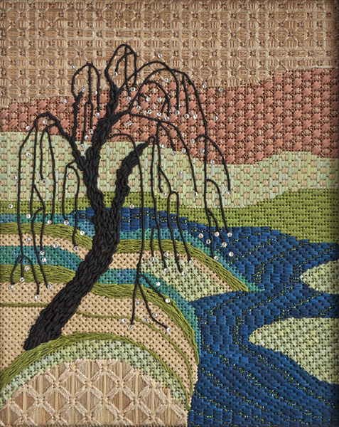 As a longtime student of yoga, the peacefulness of this JP canvas intrigued me when I first saw it displayed at The Needleworks. The combination of stitches and threads—Gloriana, Vineyard Silk, Splendor, DMC Floss, Kreinik, Trebizond, Sparkle Rays, Threadworx Expressions, Silk Lame’ Braid and Memory Thread create a soothing scene that is akin to a Sampler.