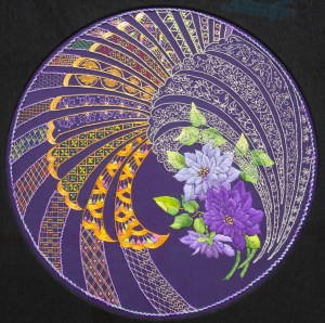 I decided to challenge myself by creating a circular design on this lovely dark purple Obi silk.