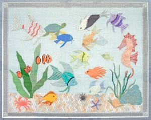 The inspiration for this piece came from the lovely aquarium in a Chinese restaurant we frequent in Florida, and from the one at my doctor’s office. (It is my understanding that doctors find aquariums have a calming effect on nervous patients.)