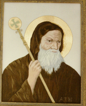 When asked to choose her most outstanding piece of embroidery, after some deliberation, Audrey chose her rendition of St. Benedict. She also noted her tour de force endeavor entitled Birds of the World which is a three panel Japanese silk screen worked in Japanese silk and metal techniques.