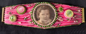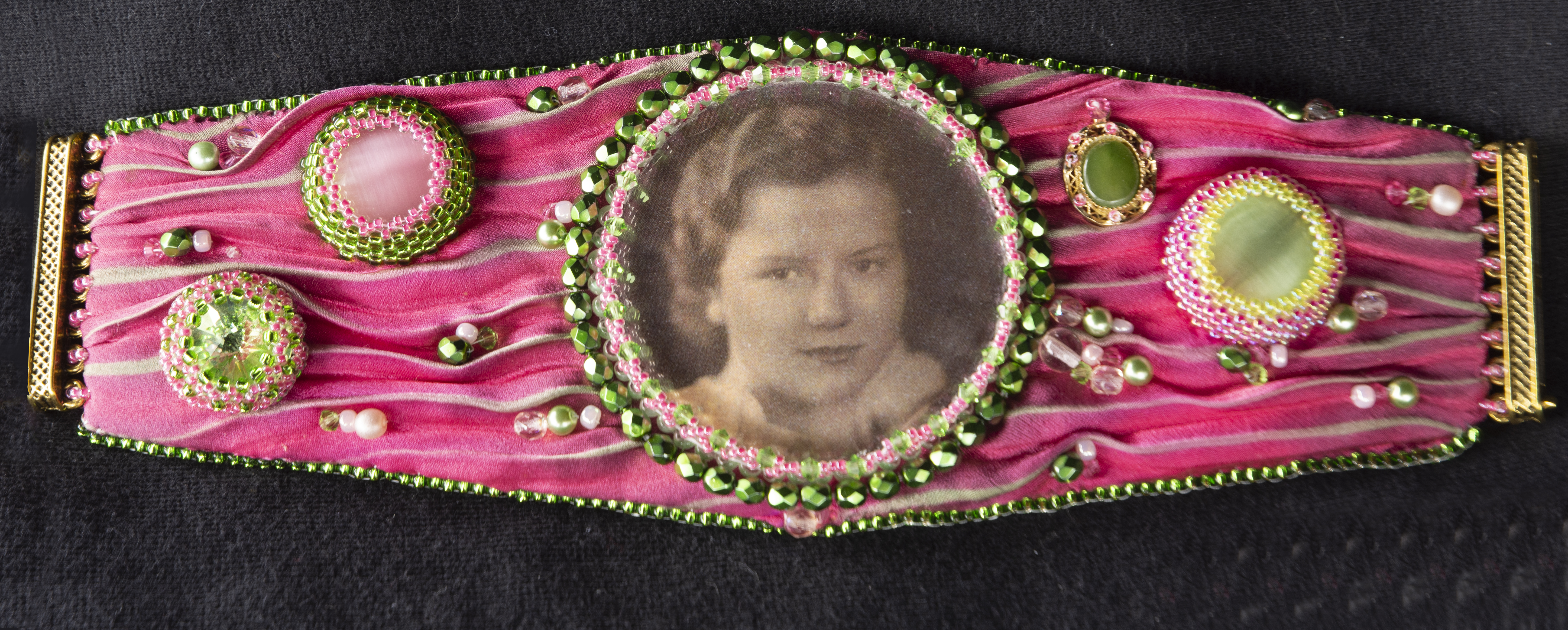 She would be the first to tell you that she couldn’t stitch for s**t – she had no patience for it. Pink and green were her favorite colors, and my grandmother was into big costume jewelry, so Grandma – this one is for you!