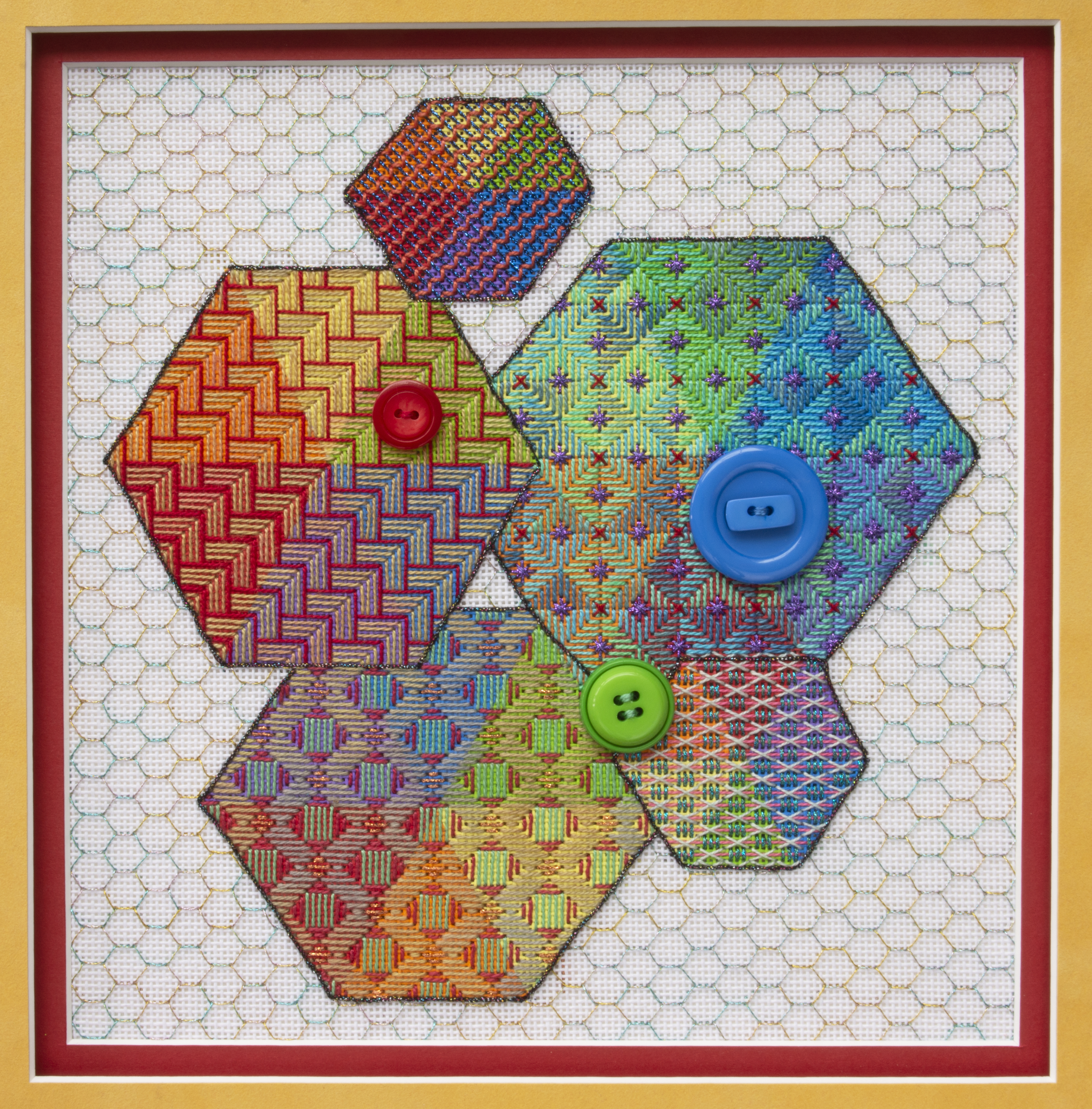 Colorplay was designed by Jennifer Riefenberg and has been taught many times at ANG Seminars and NAN Assembly. I took this class with my local ANG Fox Chapter in a workshop in Crystal Lake, Illinois. I did not change any of the design or colors. However, students had a choice of buttons and button placements so my buttons and placement locations are different from the designer’s.