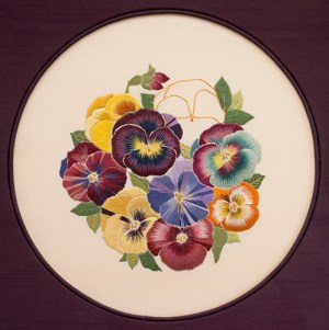 Pansy is a phase of Japanese embroidery. Many have stitched it, but this piece has a unique path to The Exemplary.