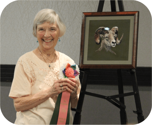 At left, Rachel Watkins and her Best-of-Show winning work, The Big Horn Sheep (The Exemplary 2019).