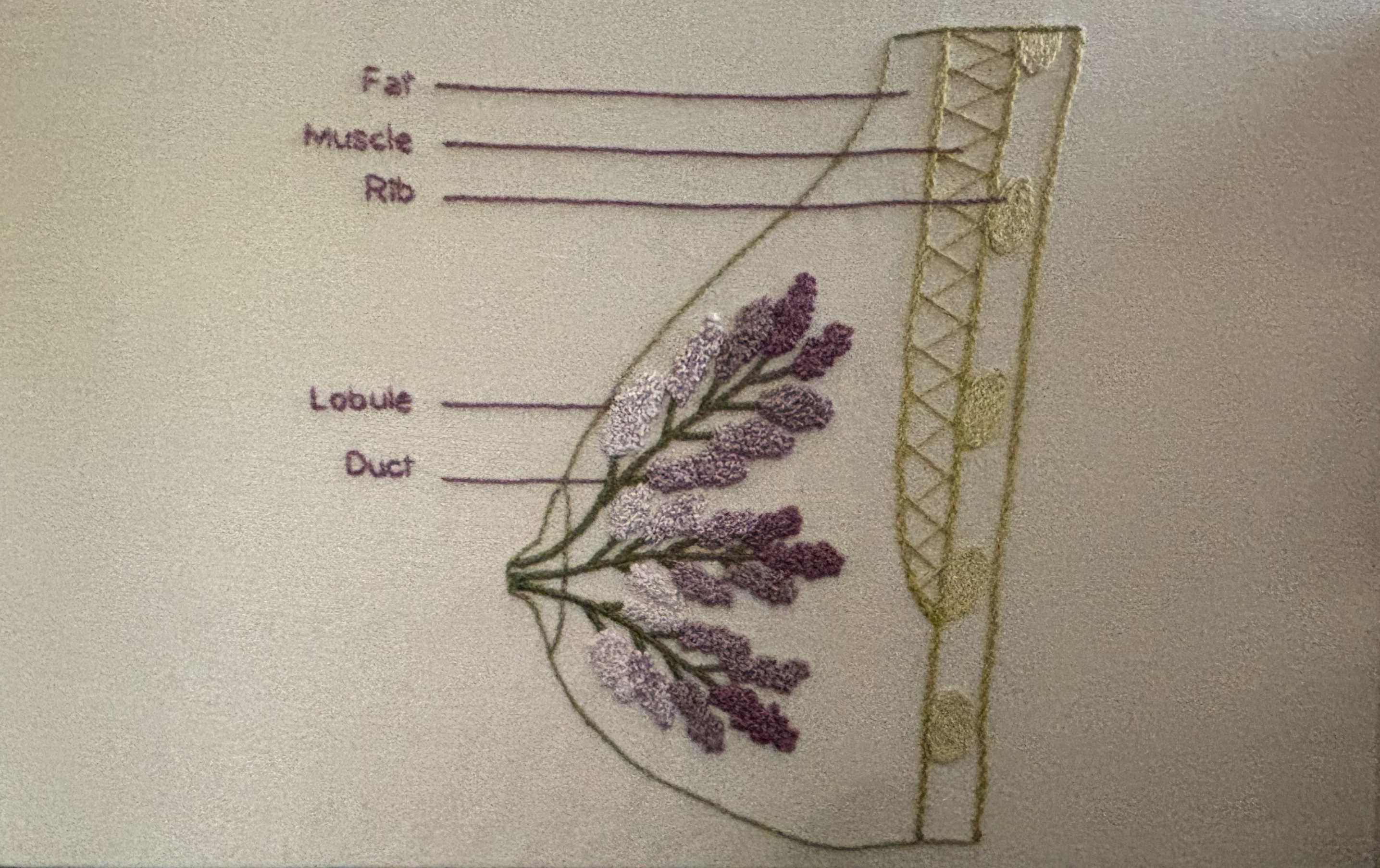 I’ve always been drawn to puzzles and the idea of how to make something work. My goal for the Teacher Cum Laude program was to experiment and play, to stretch the limits of Stumpwork and see what was possible. I wanted to test out mediums that aren’t traditionally used in the embroidery world, which led me to work with various weights of papers, book cloth and leather. Along the way, I’ve taken classes with Karen Hanmer, Erin Fletcher, Nancy Akerly and Kit Davey, always with the question in the back of my mind: Can I combine the book arts technique I was learning with my embroidery?”